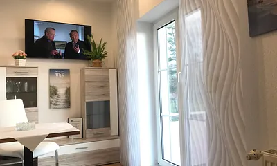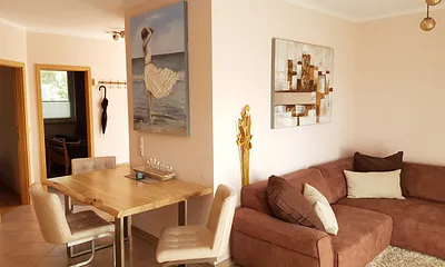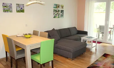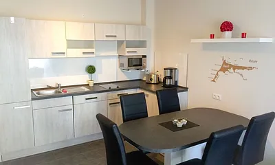 62 qm, Wohnrfraum mit Essecke, offene Küche,2 Schlafzimmer mit Doppelbett und ausziehbarem Doppelbett, Exklusiv, Neubau, Terrasse, Haustiere erlaubt