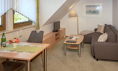 50 qm, Wohn- Schlafraum mit Essecke, ausziehbarer Schlafcouch für 2 Pers, 1 Schlafzimmer mit Doppelbett, Direkt hinter der Düne, Meeresrauschen