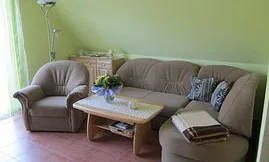 35 qm, Wohnrfraum mit Essecke und einer ausziehbaren Schlafcouch ,offene Küche,1 Schlafzimmer mit einem Doppelbet, Terrasse, Parkplatz, WLAN