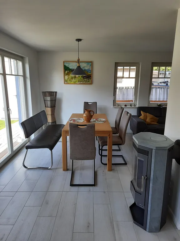 „Sehr schönes und sehr gut ausgestattetes Haus mit sehr netten Vermietern neben an. Wir haben uns mit Kindern und Enkelin sehr wohl gefühlt. Sehr ruhige Lage aber leider recht weit bis zur Ostsee. Dafür waren aber Fahräder vorhanden.