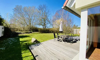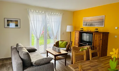45 qm, Wohn-Schlafraum mit Essecke, ausziehbarer Schlafcouch für 2 Pers, 1 Schlafzimmer mit Doppelbett, Terrasse und großer Garten