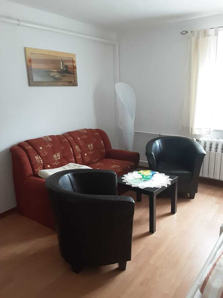 „Die Wohnung liegt absolut ruhig und ist zu zweit völlig ausreichend. Man muss wissen, dass es eine Kellerwohnung ist. Küche und Bad sind schon in die Jahre gekommen. Das Wohn- und Schlafzimmer ist neu möbliert. Wir wollten uns nur zum Schlafen aufhalten. Sehr preiswert!“