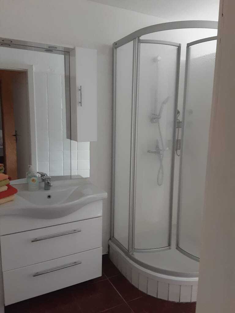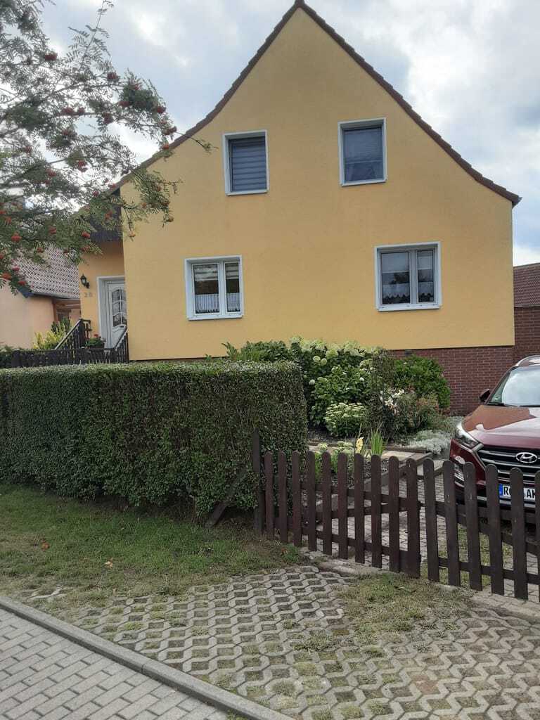 „Ferienwohnung ist für zwei Personen ideal. Prima ist der Parkplatz am Haus und die dazugehörige schöne Terrasse mit Sitz- und Grillmöglichkeit im Garten. Für die Fahrräder gibt es auch eine abschließbare Möglichkeit! Ruhige Lage und mit allem ausgestattet: Handtücher etc. was gebraucht wird.“