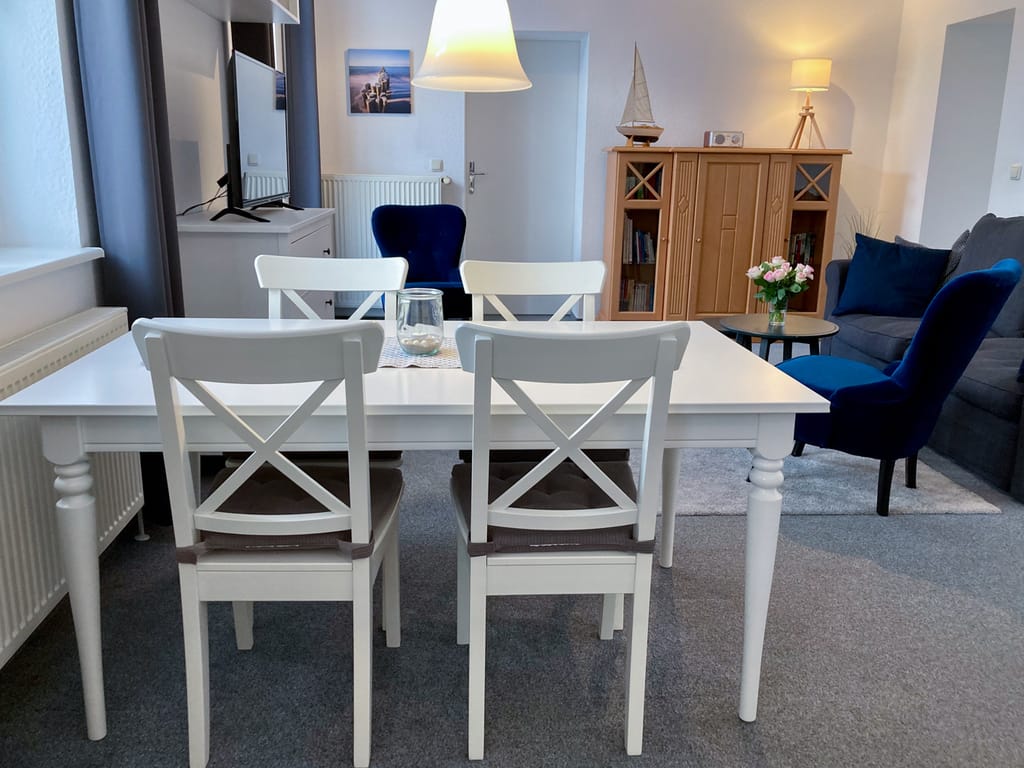 „Alles vorhanden was man braucht, von Kaffeemaschinen bis Spiele und Bücher. Sauber und liebevoll dekoriert. Zentral und dennoch ruhig gelegene Wohnung. Kurzer Weg zum Strand. Bäcker und sonstige Einkaufsmöglichkeiten fussläufig erreichbar. Einziges Manko, der hohe Einstieg in die Dusche.“