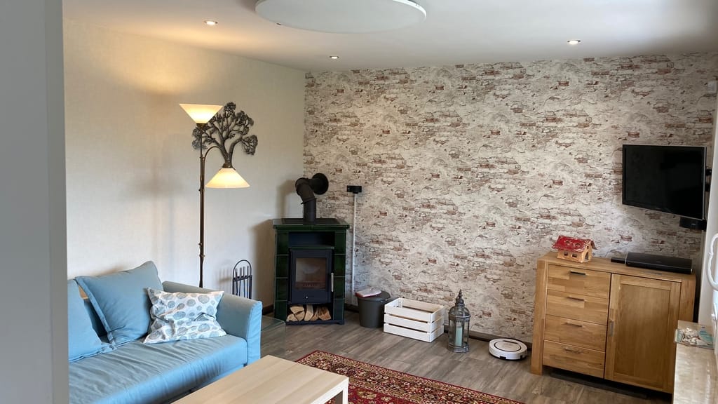 Schöne Wohnung mit allem ausgestattet was man benötigt. Lediglich im Schlafzimmer gibt es statt eines Kleiderschrankes nur eine Kommode.“