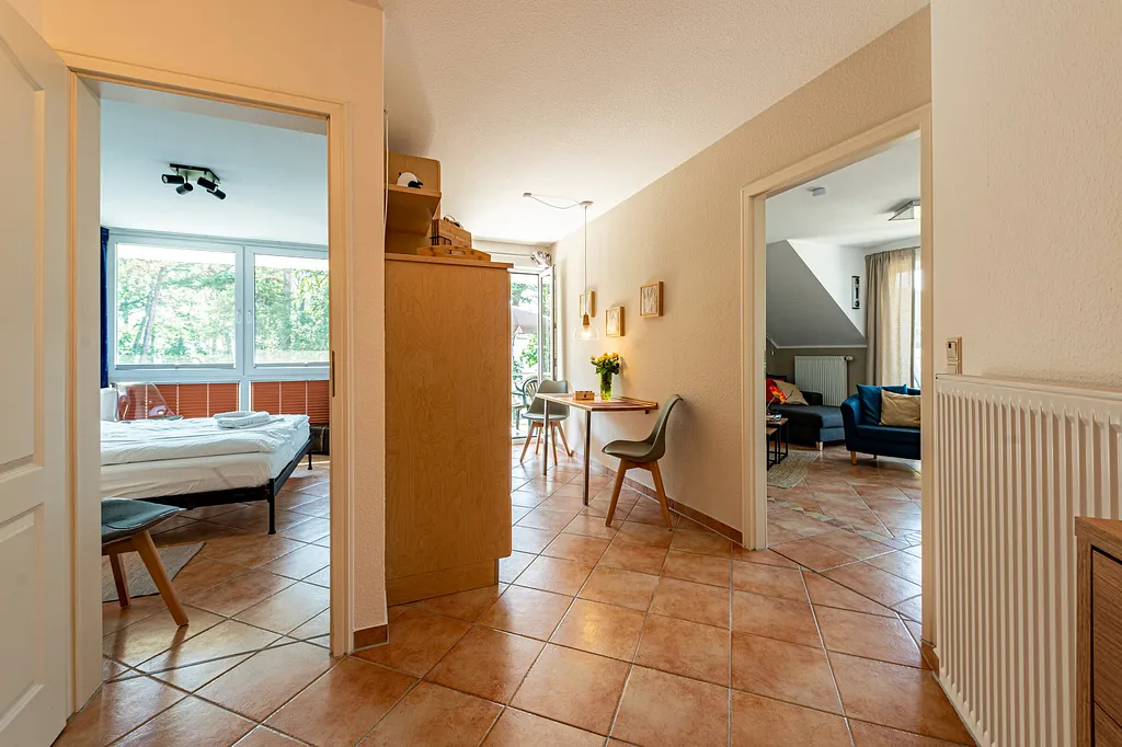 „Sehr gut ausgestattete und schöne Wohnung mit zwei Balkonen und Tiefgarage.Ca.10 Min. vom wunderschönen Ostseestrand entfernt in einer idyllischen Lage.Ein weiteres Plus waren der Aufzug und die zur Verfügung stehenden drei Fahrräder.Ein kleiner Nachteil war die sehr enge Zufahrt in die Tiefgarage“