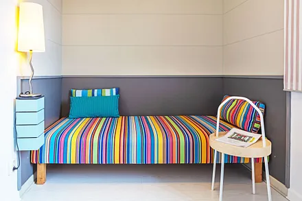 • Der Binzer Fotograf Lutz Grünke konzipierte diese farbenfrohe und familienfreundliche Ferienwohnung. 2.OG