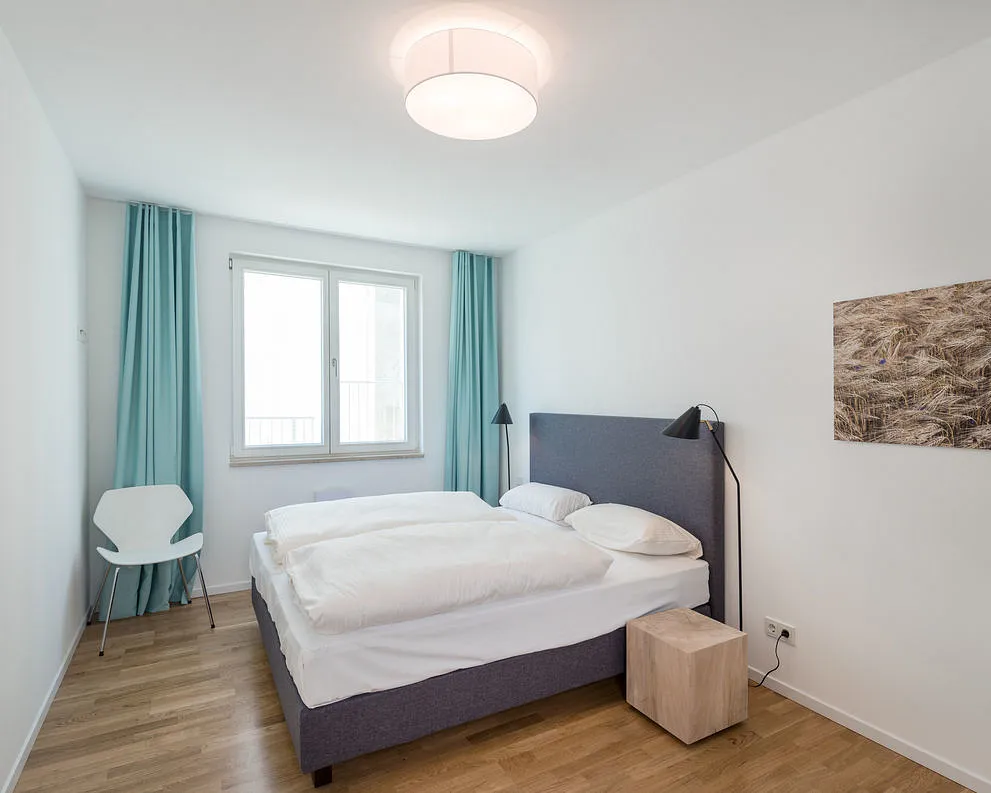 Ein Parkplatz je Ferienwohnung in der Tiefgarage (Doppelparker) steht den Gästen optional für 15 Euro pro Nacht zur Verfügung.