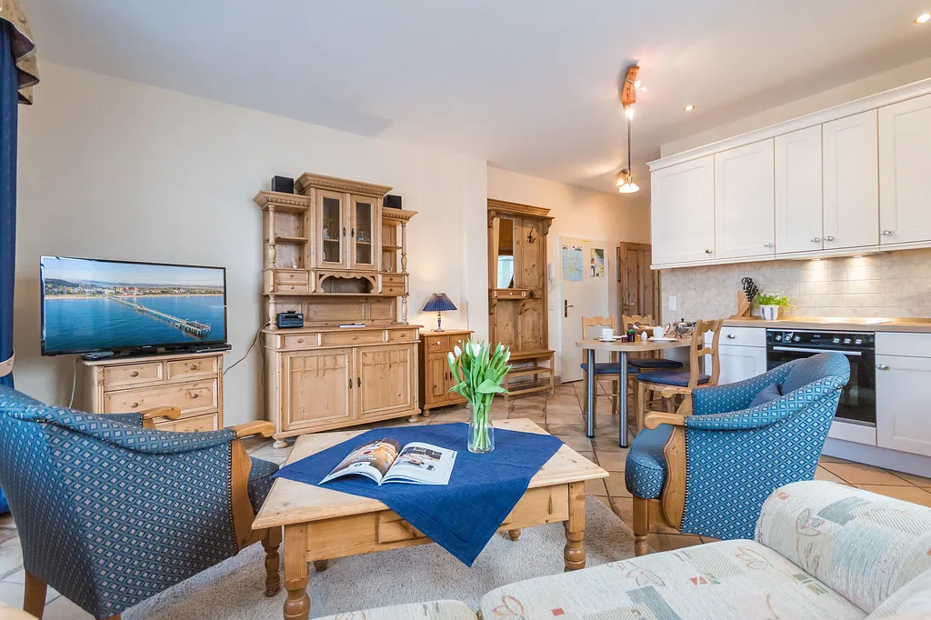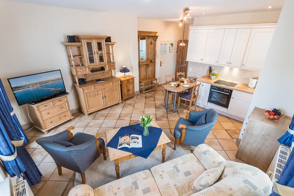 „Die Wohnung ist sehr gut ausgestattet. Leider muesste die Couch mal geprueft werden. Im ausgezogenen Zustand rutschen die Keilkissen nach unten. Wir haben uns dann mit einem Rucksack, den wir vom Fußboden gegengesetzt haben, geholfen. Strandkorb am Strand ist erst ab Mai zu nutzen. Lage top.“