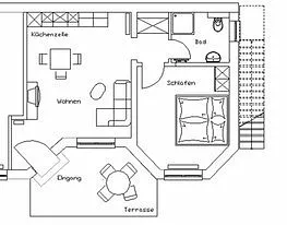 „Die Wohnung liegt ruhig in einer Seitenstraße als Pfeifengrundstück ideal für 2 Personen.