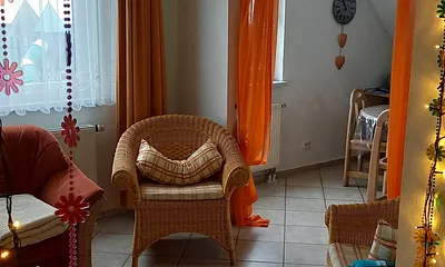 66 qm, Wohnraum mit Essecke, Sofa=ausziehbare Schlafcouch f.2 Personen, separates Schlafzimmer, Nichtraucher, Parkplatz, sehr gr.Balkon, STRANDKORB Mai-Sept.,2.OG