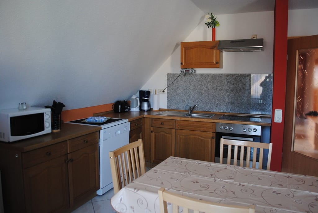 „Die Lage ist super,man ist in 5 min an der Promenade. Es ist vieles zu Fuß zu erreichen. Die Wohnung ist groß genug auch für 4 Personen. Ein Mango ist das die Möbel(unter anderem Betten und Sofa)schon bessere Zeiten hatten.“