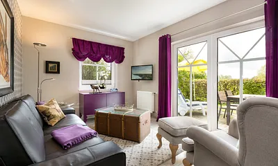 91 qm, Wohnzimmer mit TV und Klavier, 3 Schlafzimmer (eins davon mit TV), separates Gäste-WC, Wohnung über 3 Etagen, 2xTV, Südterrasse, Garten mit Spielplatz, Bolzplatz, Tischtennis, Trampolin, Grillplatz