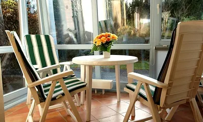 60 qm, 3 Raum Wohnung mit 2 Schlafzimmer, Wintergarten und Terrasse, Wintergarten und Terrasse, Seeblick