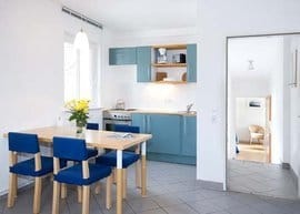 Halbpension kann derzeit leider nicht angeboten werden. Zahlreiche Restaurants liegen in unmittelbarer Nähe. Die Küchen in unseren Appartements machen Sie außerdem unabhängig von Buffet- und Restaurantzeiten. Bäcker und weitere Einkaufsmöglichkeiten sind zu Fuß zu erreichen.