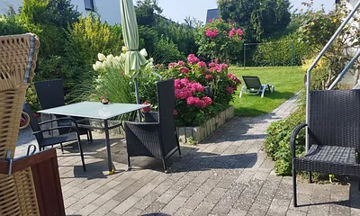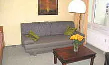 40 qm, Doppelbett 2x(0,90 x 2,0) und Schlafcouch(1,40 x 2,0), großer Kleiderschrank, Eßtisch für 4 Personen, WLan möglich, überdachte Loggia mit Sonne bis Mittag
