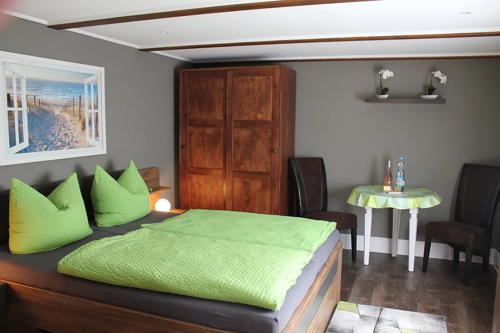„Ein kleines,sehr sauberes Ferienzimmer. Der Vermieter super nett. Lage gut da es in jeder Richtung geht und wir mit Fahrrad immer unterwegs waren. Wenn das Wetter gut ist gibt es eine sehr schöne sitzecke zum Frühstücken. Also insgesamt top“