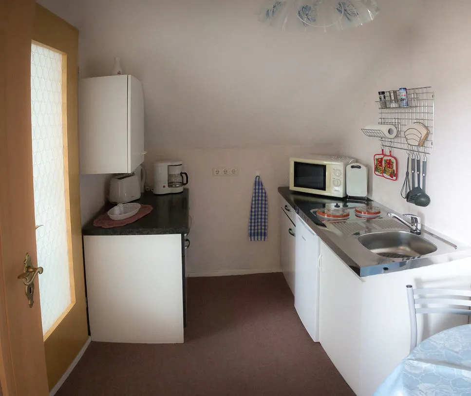 „Die Wohnung war sauber und zweckmäßig eingerichtet. Kleine Küchenzeile, ein etwas größerer Kochtopf und ein Sieb (Nudeln) wären schön gewesen. Die Essecke in der Küche war leider sehr eng. Ansonsten nette Vermieter und Sauberkeit in Ordnung. Parkmöglichkeit auf dem Grundstück.“