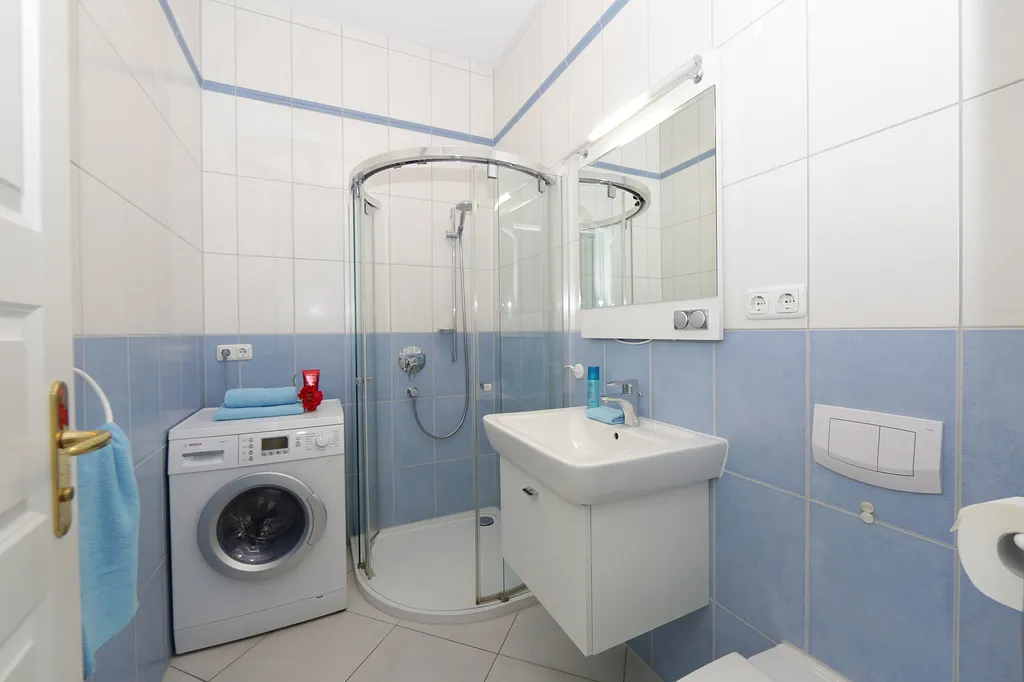 „Schöne Wohnung,toller Ausblick, aber abgewöhnt. Bräuchte eine Sanierung in den Bädern. Türen von Dusche und Badewanne schließen nicht mehr richtig. Wasser läuft raus.