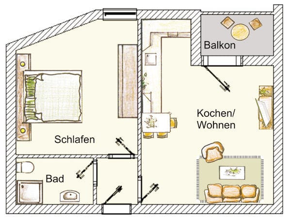 „Die Betten, vor allem die Matratzen und Lattenrosten, sind schon in die Jahre gekommen. Bei jeder Bewegung im Bett quietscht es.