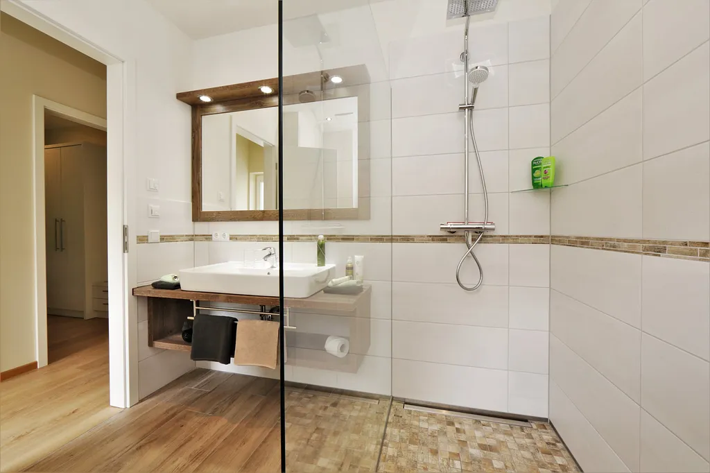 Ruhe trotz Strandlage, Fußbodenheizung, Gaskamin, absolut sauber, sehr groß, 2 Badezimmer, Sauna im Keller, Tiefgarage, funktionale Küche, 3 x TV, DAB-Radio ... alles top und den Preis wert.“