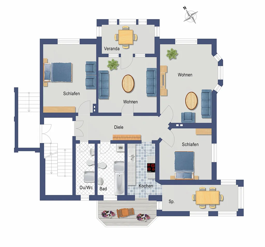 Anspruch auf eventuell vorhandene Balkon- oder Terrassenmöbel besteht von Mai bis September. Die Bereitstellung des WLANs richtet sich nach den jeweiligen