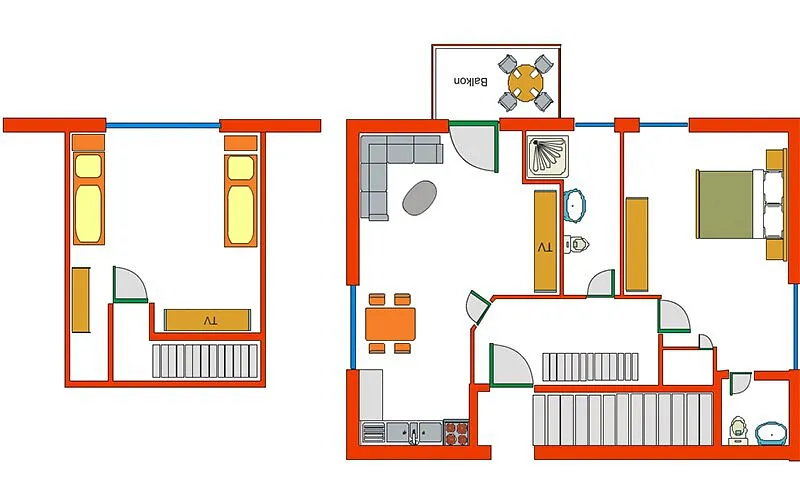 | 31.Mai - 31.Aug | 225 € | 140 € | 15€ p.P./Nacht | 7 |