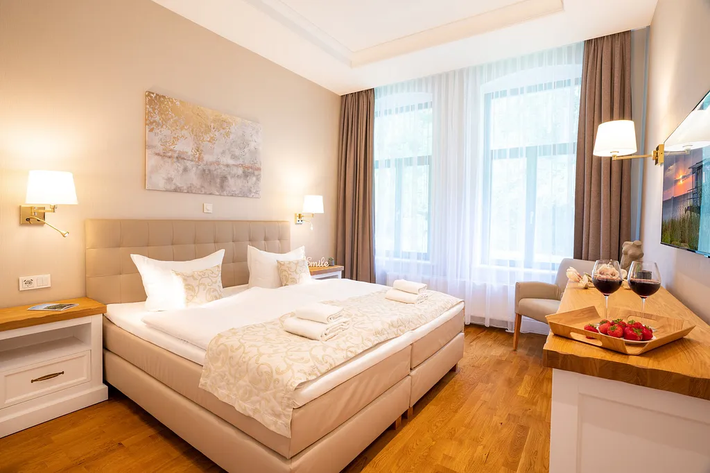 Ein Babyreisebett mit Matratze kann gern zu 10€ - sowie ein Hochstuhl zu 10€ einmalig zugebucht werden. Die Zudecke, Kopfkissen sowie zugehörige Bezüge und Laken zum Babybettchen bitten wir mitzubringen. Bonus: Die Busse der Usedomer Bäderbahn können Sie auf der Insel Usedom bei Vorlage der Kurkarte kostenfrei nutzen.