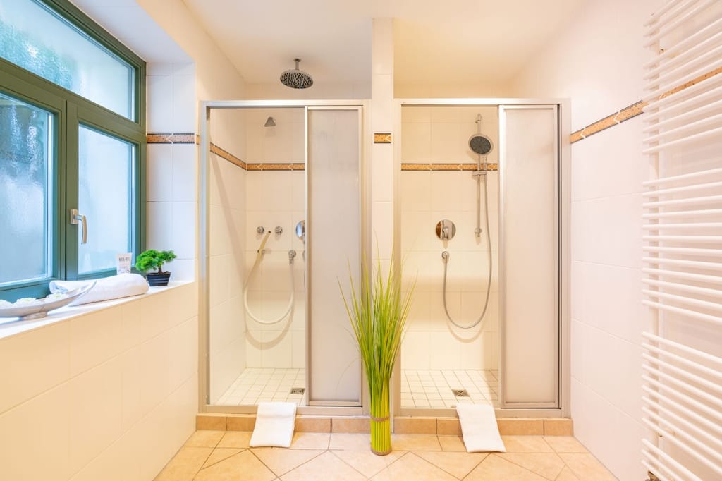 Saunabereich mit ca. 20 m², finnische Sauna mit Liegen und 2 Massageduschen.