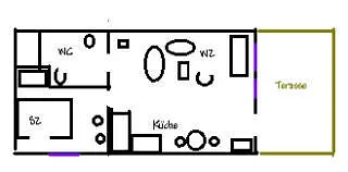 In den 40 m² Wohnungen ist eine Aufbettungen möglich. Pro Tag fallen 7,50 EURO je Aufbettung zusätzlich an.
