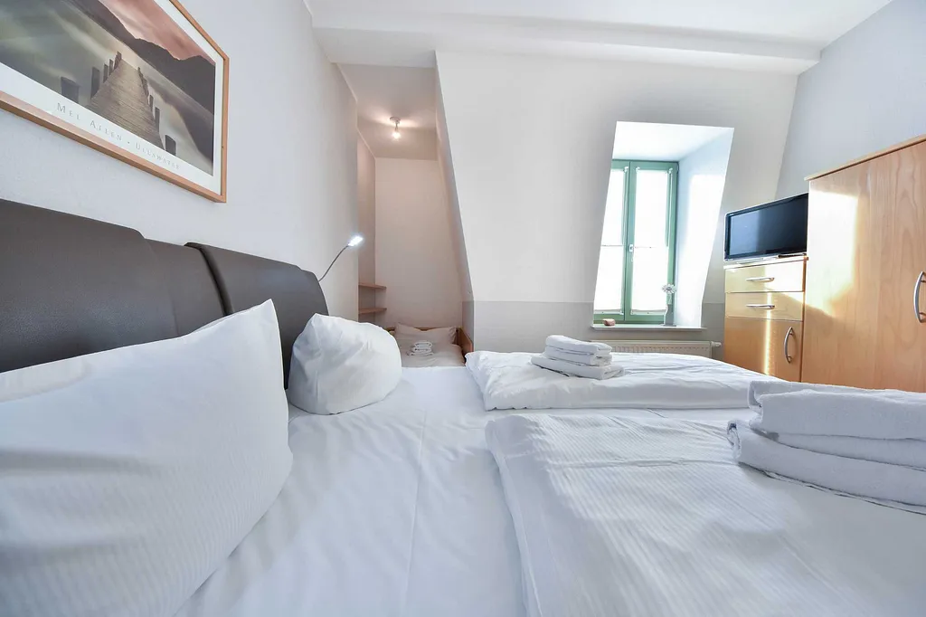 Bei Anreise sind die Betten für Ihren Komfort bezogen und die Handtücher liegen bereit. Dabei handelt es sich um eine Grundausstattung, Sie finden bei Ihrer Anreise pro Person zwei Handtücher und ein Badetuch vor.