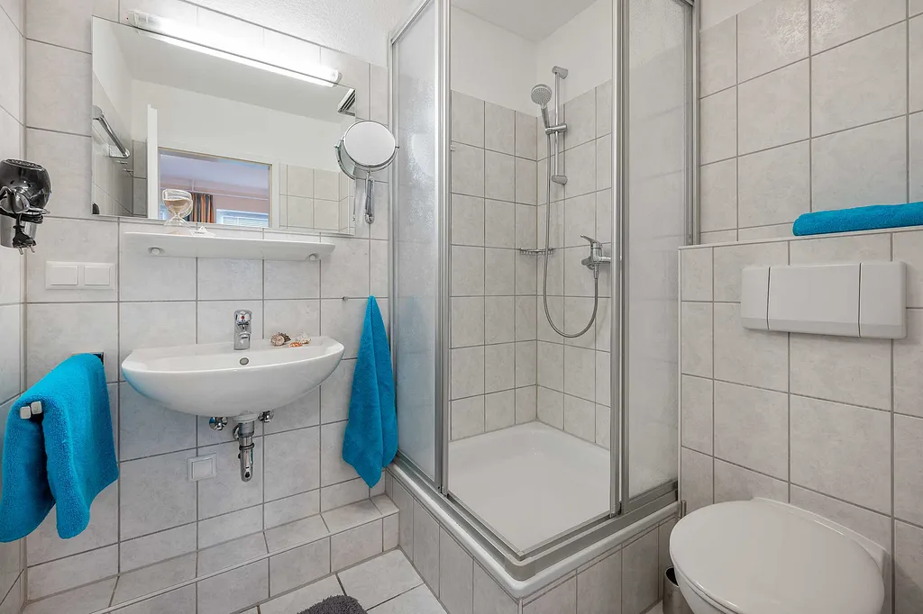 „Eine sehr liebevoll eingerichtete FW mit hervorragender Lage, uns hat es an nichtsgefehlt. Einziges Manko ist die Duscharmartur mit einem Kipphebel, da kommt man schnell mal gegen und die Temperatur verändert sich schlagartig. Eine Termostatarmatur (ca. 32,- Euro beim Discounter) wäre perfekt.“