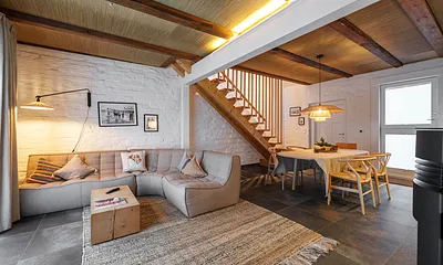 131 qm, offener Wohnbereich mit Küchenzeile, 2 Schlafzimmer jeweils mit Doppelbett, Schlafcouch für 2 Kinder,, 2 Bäder, 2 Terrassen, 2 PKW Stellplätze, eBike Ladestation,