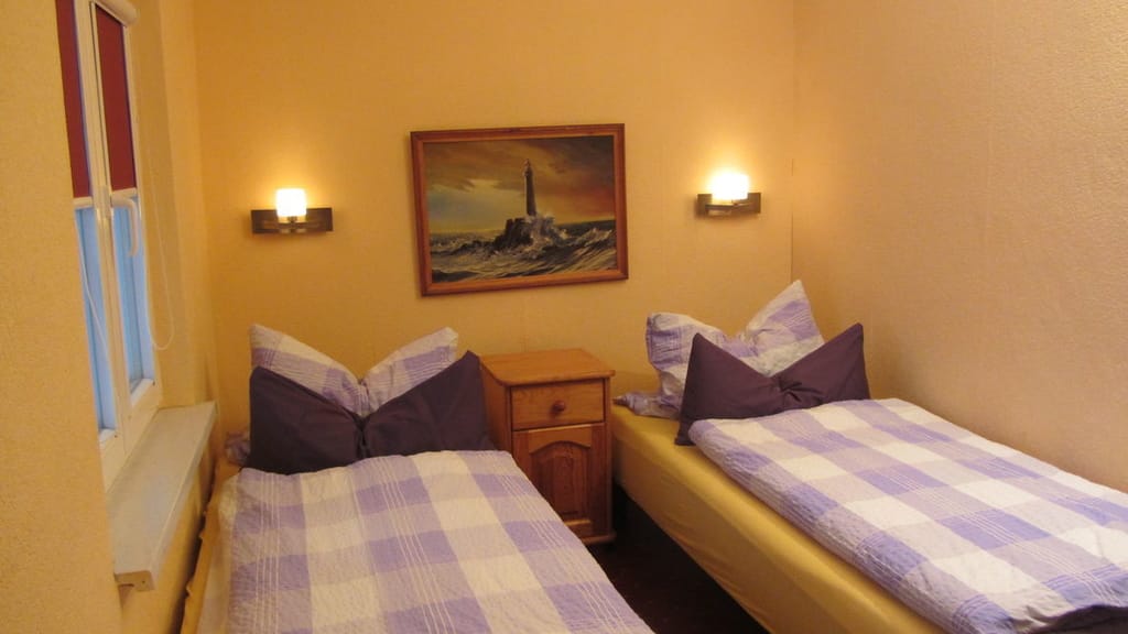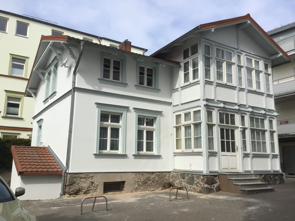 „Die kleine, sehr gemütliche Wohnung liegt im ersten Stock eines etwas zurückgesetzten Hauses sehr zentral nur wenige Meter von der Seebrücke und somit dem Strand entfernt. Zur Wohnung gehört ein Stellplatz, mitgebrachte Fahrräder können in einem Schuppen verschlossen werden.“