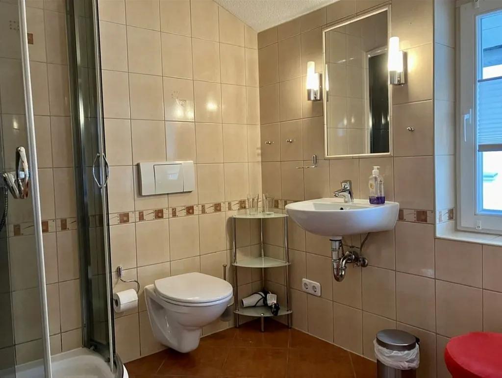 „Groß genug für 2 Personen mit Kind, sehr gute Lage. Empfehlenswert, auch wegen der ständigen Erreichbarkeit des sehr freundlichen Vermieters. Einziges Minus - kein Geschirrspüler in der Küche.“
