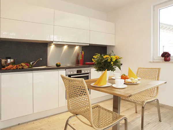 Sonst aber sehr modern eingerichtet (Küche) und Parkplatz auf dem Grundstück.“