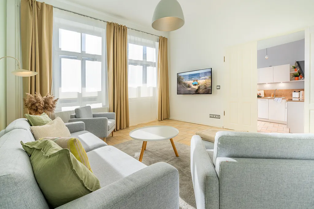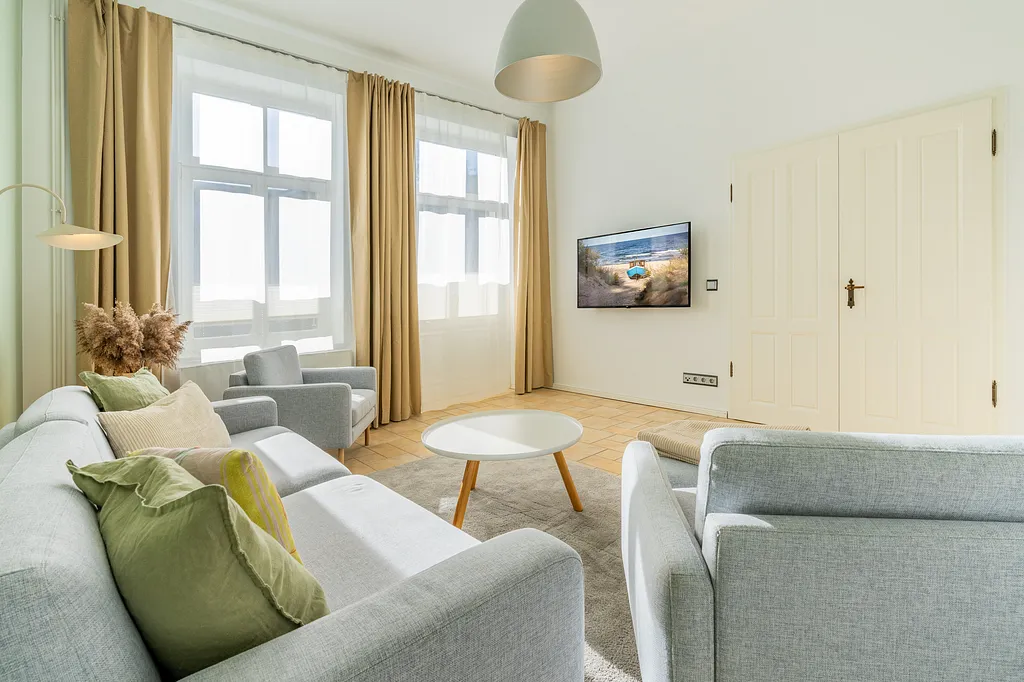 Ihren Appartementschlüssel erhalten Sie in unserem Büro: Badstraße 14 im Seebad Heringsdorf. An Ihrem Anreisetag können Sie das Appartement ab 16.00 Uhr beziehen. Am Abreisetag steht Ihnen das Appartement bis 10:00 Uhr zur Verfügung.
