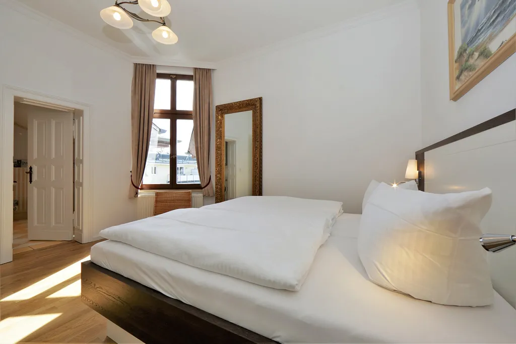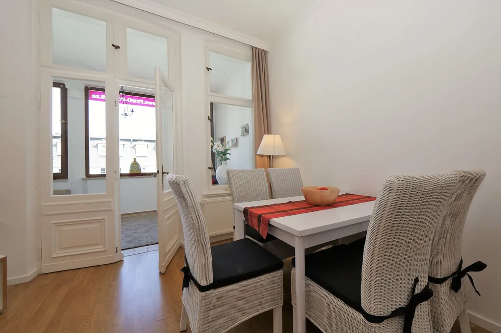 Ein PKW-Stellplatz ist jeder Wohnung zugeordnet. Dieser befindet sich im Heringsdorfer Parkhaus „Am Zentrum“, ca. 8 Minuten fußläufig entfernt. Ein Platz zum Be- und Entladen befindet sich direkt am Haus. Für die Parkkarte hinterlegen Sie bitte bei Anreise eine Kaution in Höhe von 15,00 Euro.