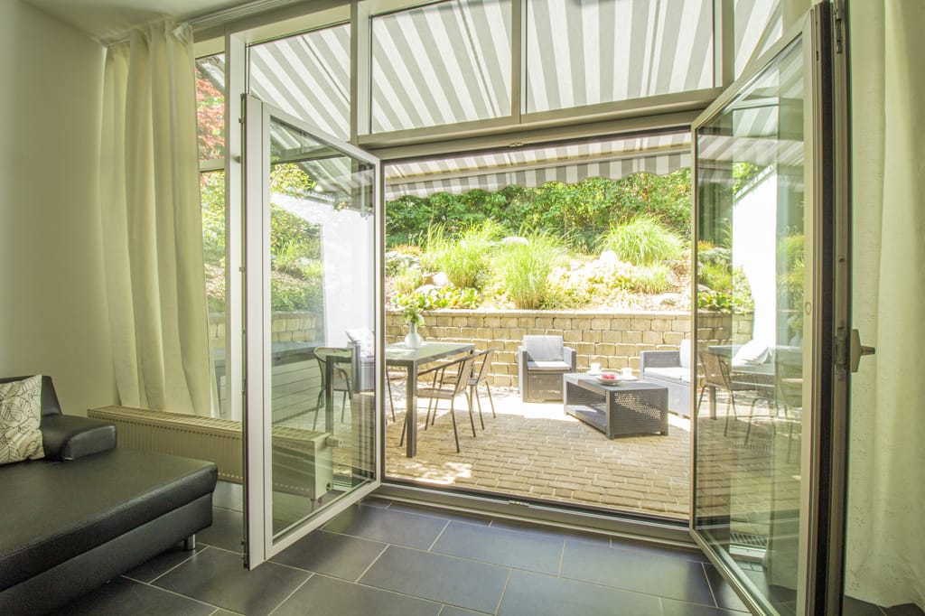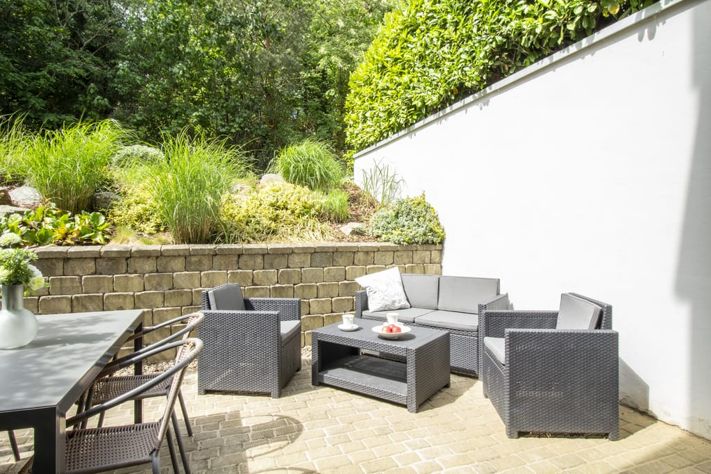 Auch die Terrasse ist sehr schön eingebunden.
