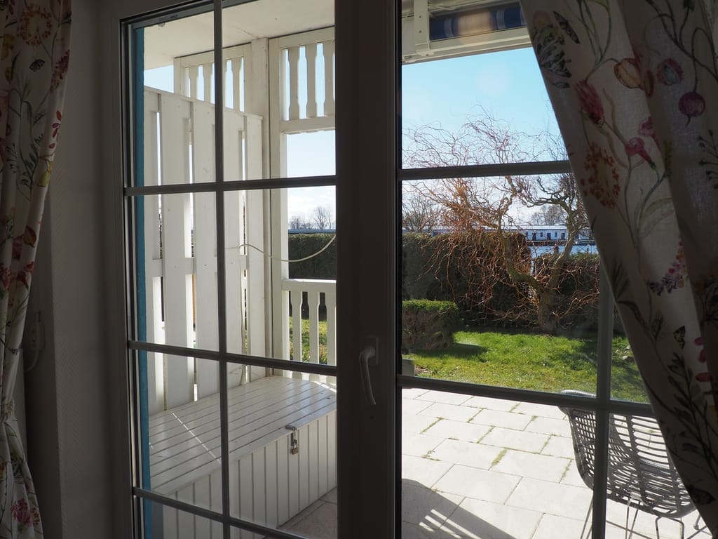Traumhafter Hafenblick von allen Wohnungen. Alle drei Fewos verfügen über eine Sonnenterrasse mit Gartenmöbeln und Strandkorb (Fewo 11 und 40) bzw. Sonnenmarkise (Fewo 07). Das beliebte Restaurant "Veermaster" befindet sich  direkt gegenüber.