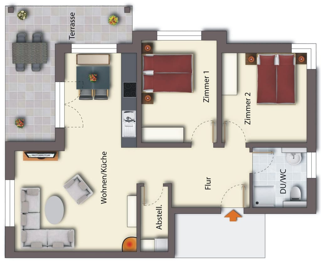 Dem Appartement steht 1 PKW-Stellplatz auf dem Grundstück zur Verfügung.