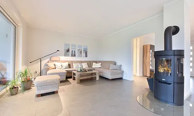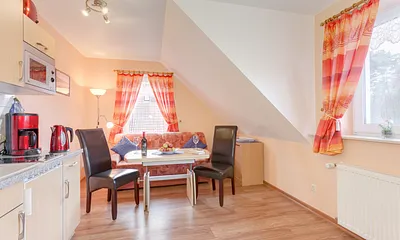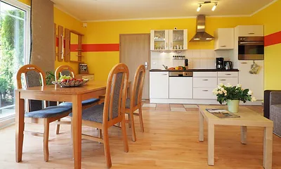 73 qm, großer Wohnraum mit Essecke, Kamin und Küche, 1 Schlafzimmer mit Doppelbett, 1 Schlafzimmer mit 2 Einzelbetten, Terrasse, Strandkorb, Kamin, Waschmaschine, Fahrradunterstand,