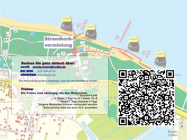 Einen Strandkorb buchen wir für Sie gerne mit am Abgang 7C, 7B (Hundestrand) und ehemals 7A (FKK).