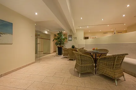 Saunabereich mit Trocken- und Dampfsauna, Schwallduschen, Ruheraum mit Liegen, Umkleideräume mit Fön, kostenfreie Nutzung einschließlich Schwimmbadnutzung und Fitnessraum von 09.00 Uhr - 21.00 Uhr täglich