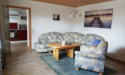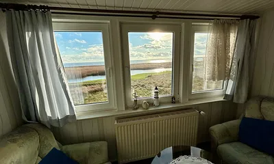 max. 4 Erwachsene und 1 Kind im Alter von bis zu 3 Jahren, 53 qm, Wohnzimmer mit eingebauter Küche & 2 separate Schlafzimmer, Achterwasserblick ,Terrasse