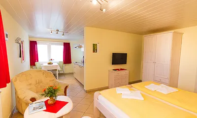 max. 2 Personen, 20 qm, Wohnraum mit Doppelbett für 2 Pers.