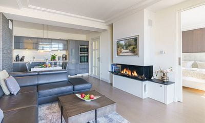 Urlaub Deluxe:Wohnzimmer mit edler Einbauküche, Schlafzimmer mit Doppelbett und TV