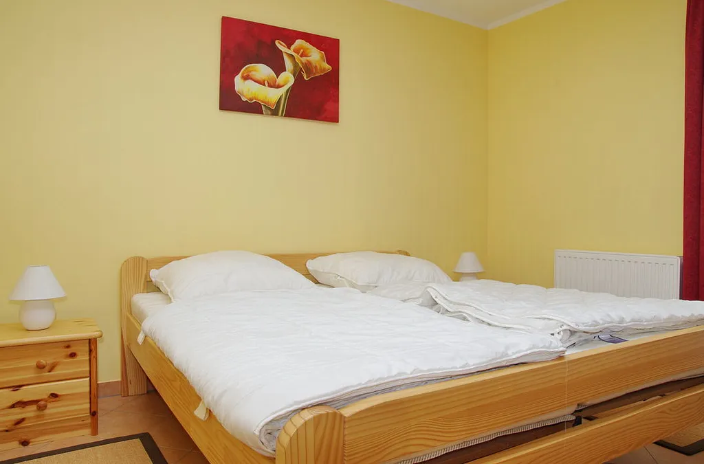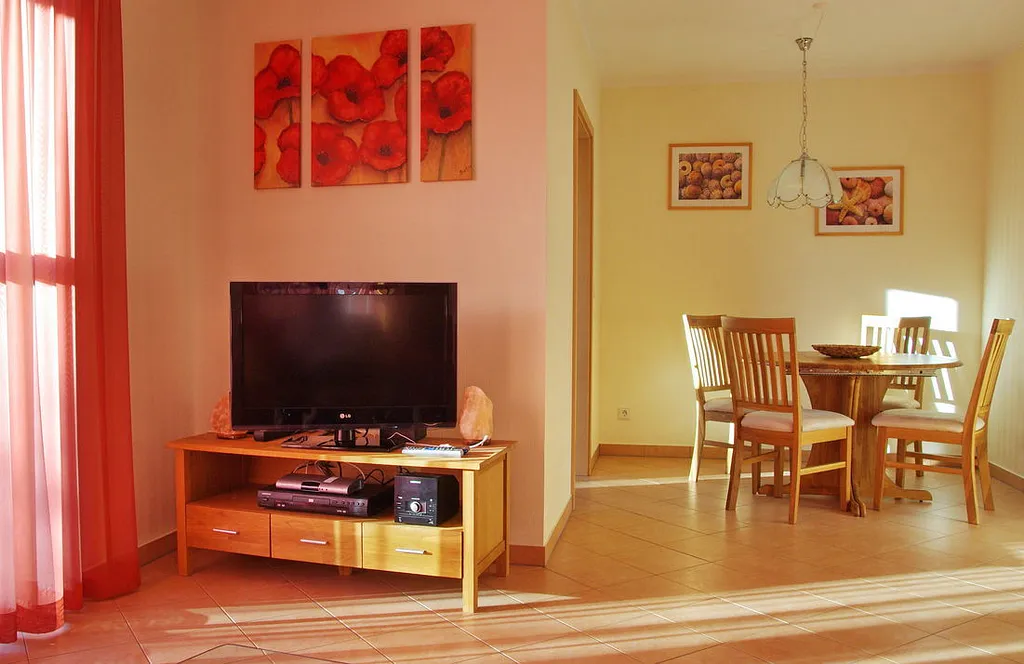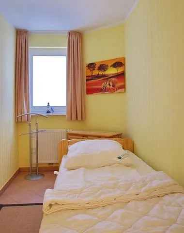 „Lage u. Größe der Wohnung prima, ruhig und nah an Zentrum und zum Strand. Parkplatz und Schuppen für Räder. Die Wiese vor der Terrasse ist zu beiden Seiten offen, nicht eingezäunt. Kleiner Fernseher und kein W-Lan/Internet.“
