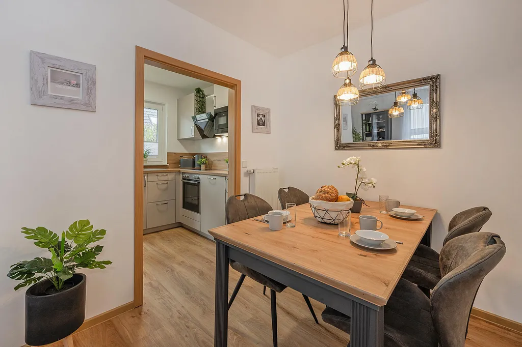 „Top neu ausgestattete und sehr liebevoll und detailgetreu eingerichtete Wohnung, es hat uns an nichts gefehlt, hochwertige Einrichtung und Ausstattung. Neue Markenküche und hochwertiges in ausreichender Menge vorhandenes Zubehör. Wir kommen sehr gern wieder.“