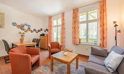 47 qm, offener Wohnbereich mit Küchenzeile, Schlafzimmer mit Doppelbett, Aufbettung Schlafcouch,, strandnah, Balkon, Fahrradraum, gemeinschaftlicher Waschraum,